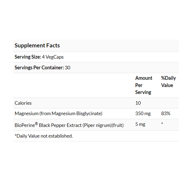 • 每4粒含有350毫克甘胺酸鎂+黑胡椒